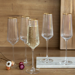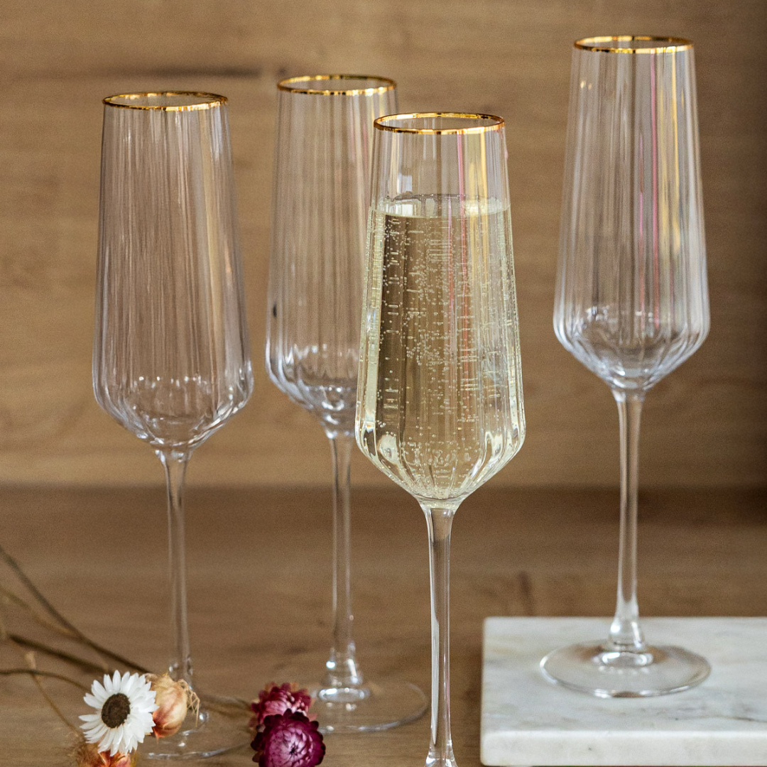 A refined gold rim adds a polished, high-end touch, making these flutes ideal for celebrations, festive gatherings or elevating your everyday sparkling drinks. The gold detailing enhances the sophistication of each glass.