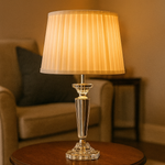 This lamp is perfect for elevating any room — whether as a focal point on a side table, bedside, or as part of a decorative display. The crystal base catches and refracts ambient light beautifully. Its clean white shade softens illumination to create a warm and inviting glow.