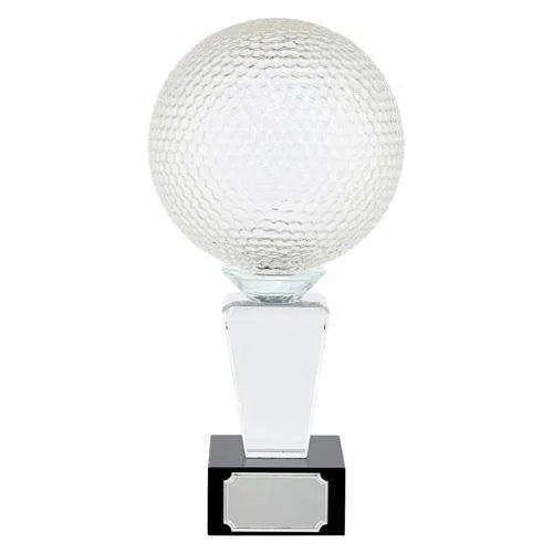 Ultimate Golf Crystal Award 390mm. A fantastic golf award. This stunning design of premium crystal golf ball on a plinth is a award to be treasured. Comes with a presentation box included.