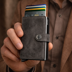 A sleek and secure wallet that combines vintage style with modern innovation and everyday practicality.