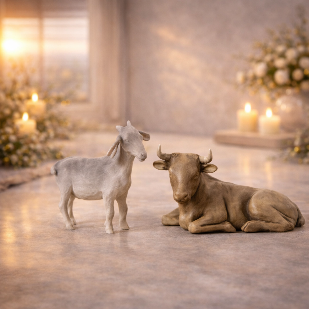 Complete your Nativity display with the beautifully crafted Willow Tree Ox and Goat figurines. Designed to complement the classic Willow Tree Nativity collection, these two gentle animals help surround the Holy Family with warmth, quiet strength, and protection.