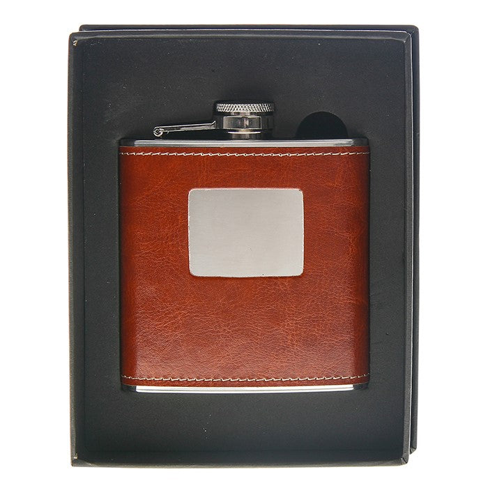 Hip Flask 6oz Brown leatherette in presentation gift box