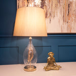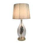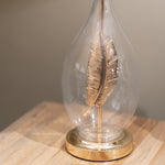 blending elegance with a unique feathered design. This lamp creates a soft and ambient glow