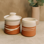 Paul Maloney Pottery Terracotta Sugar Bowl and Milker. Paul Maloney has been making pottery and art at his studios in Wexford since 1998. His latest collection of ceramics has been hugely successful and are now presented in a beautiful gift packaging. Make ideal home or wedding gift.