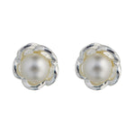 Kilkenny Sterling Silver Pearl Stud Earrings in Floral Setting