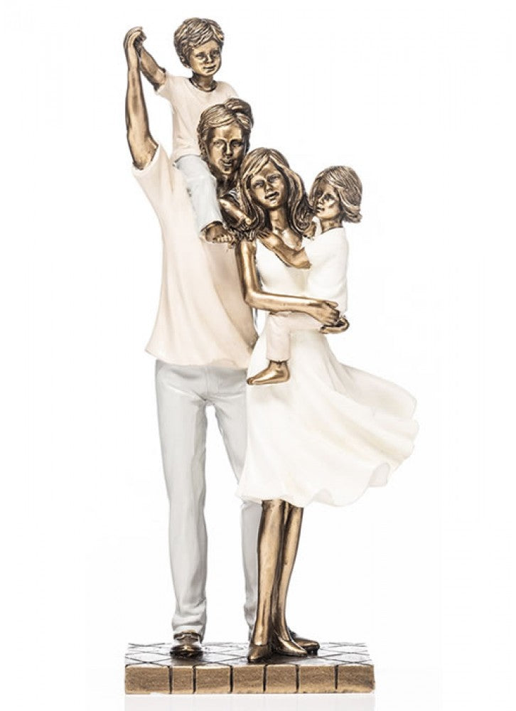 Exquisite bronzed figurine of a fashionable Couple with Children - white hand painted detail. Browse our beautiful range of hand painted figures, each modelled with intricate details that truly bring these pieces to life, every design within this collection captures the true character of each piece.
