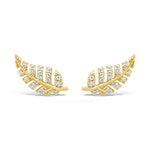 Each earring is meticulously crafted with clear, hand set stones that shimmer beautifully with every movement. The intricate leaf detailing and polished gold plating create a radiant balance of sophistication and charm.