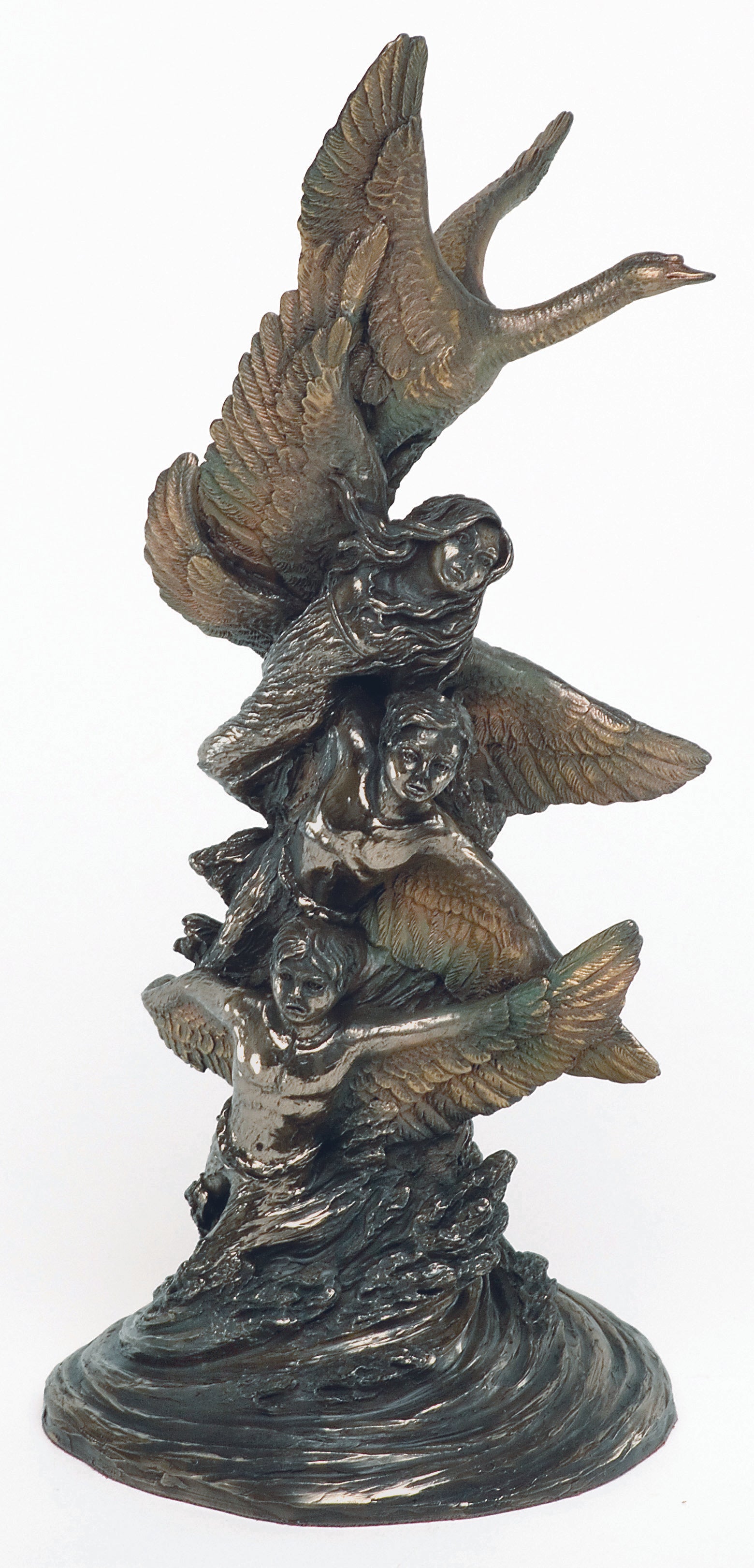 Depicts the iconic swan transformation story from Celtic myth, beautifully sculpted to evoke emotion and storytelling