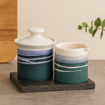 Paul Maloney Pottery Teal Sugar Bowl and Milker. Paul Maloney has been making pottery and art at his studios in Wexford since 1998. His latest collection of ceramics has been hugely successful and are now presented in a beautiful gift packaging. Make ideal home or wedding gift.