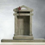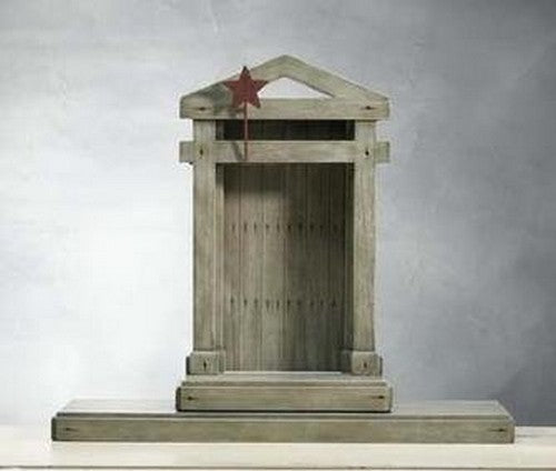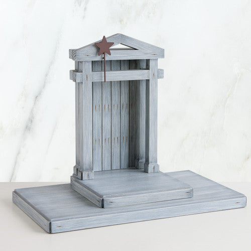The Creche is designed to display the classic Nativity collection.While simple in architectural detail, the Creche has meaning built into its very design. The piece has a regal, stately appearance, yet is constructed from humble materials of barn wood and nails. The structure's proportions also suggest the size and shape of the cross, while its rusty nails foretell the crucifixion. The Creche intimately shelters the Holy Family, then opens wide to welcome shepherds and travelers from afar.