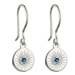Empowerment Sterling Silver Hook Earrings Pair with Diamond Cut Cubic Zirconia Disc - Sapphire Crystal CZ and Sterling Silver Chain.