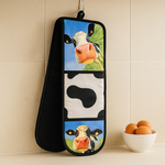 Iconic Patterns: Adorned with two standout designs—“The Moover & Shaker” and a fun cow print—these gloves bring a vibrant splash of colour and creativity to everyday cooking.