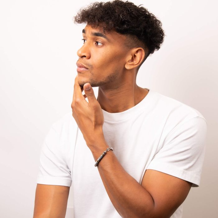 Crafted with meticulous attention to detail in stainless steel, this bracelet is designed to elevate your style, exuding an air of self-assuredness that's second to none. Featuring stainless steel and hematite beads, strategically placed to create a striking contrast against each other. Hematite, with its earthy tones, represents stability and grounding, a perfect symbol for the confident man who stands firm in his convictions. Whether you're heading to a formal occasion or simply stepping out for a casual rendezvous, the bracelet will effortlessly complement your ensemble, leaving a lasting impression wherever you go.