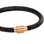 Fred Bennett Plaited Black Leather and Rose Gold IP Hexagon Clasp