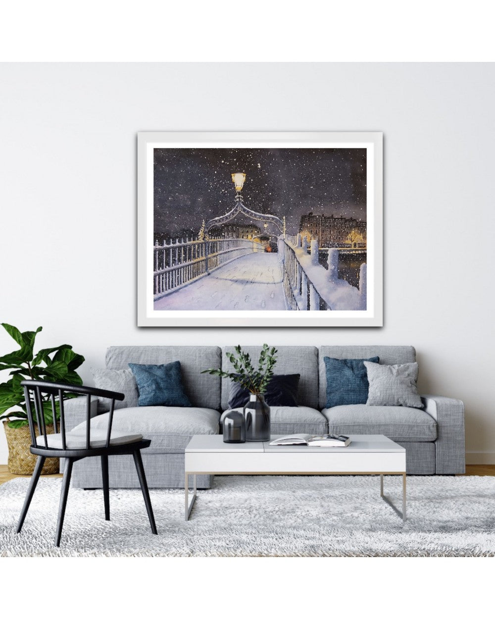 Ha'penny Bridge A Winters Chill by Sean Curran Art Framed Print 16" x 12"