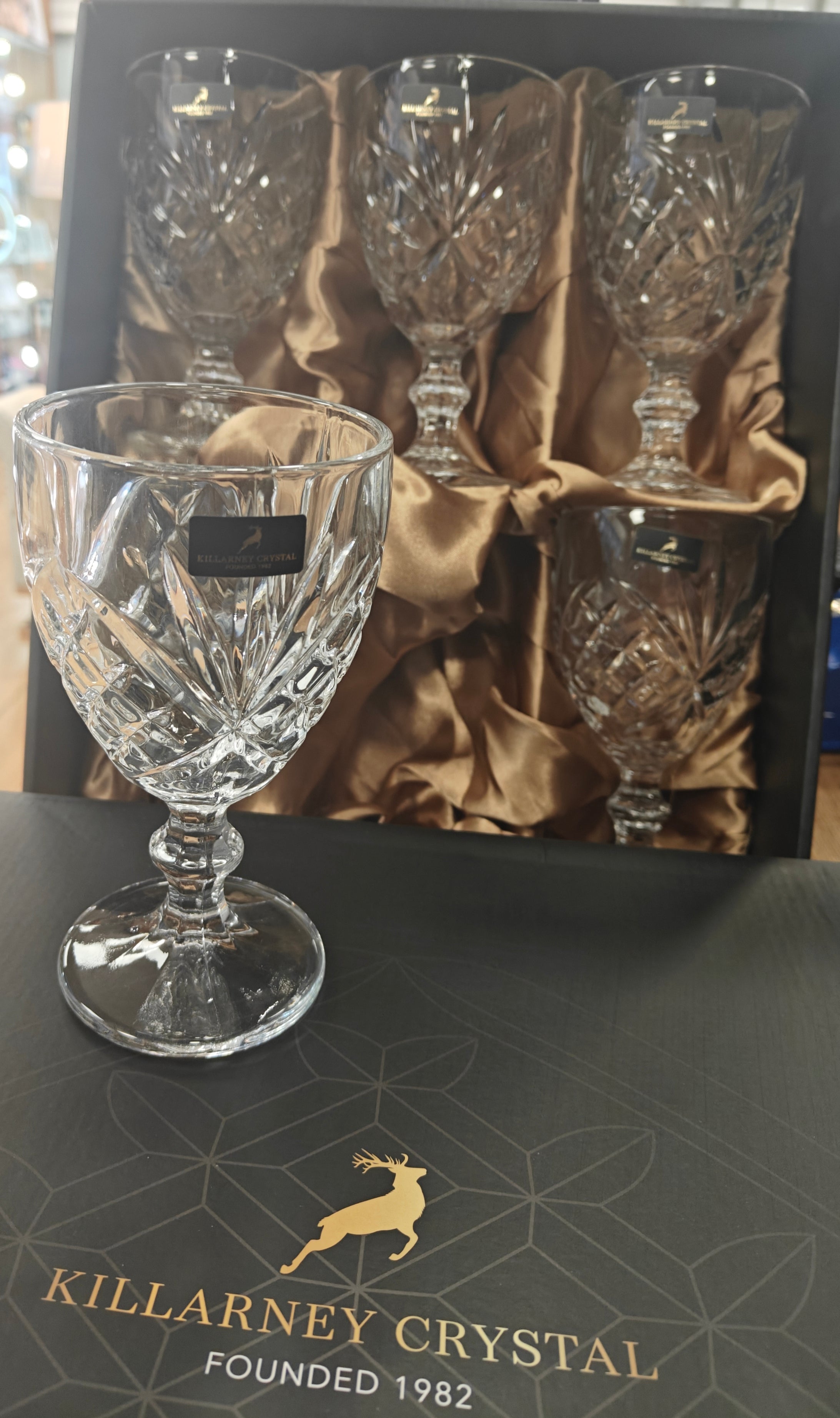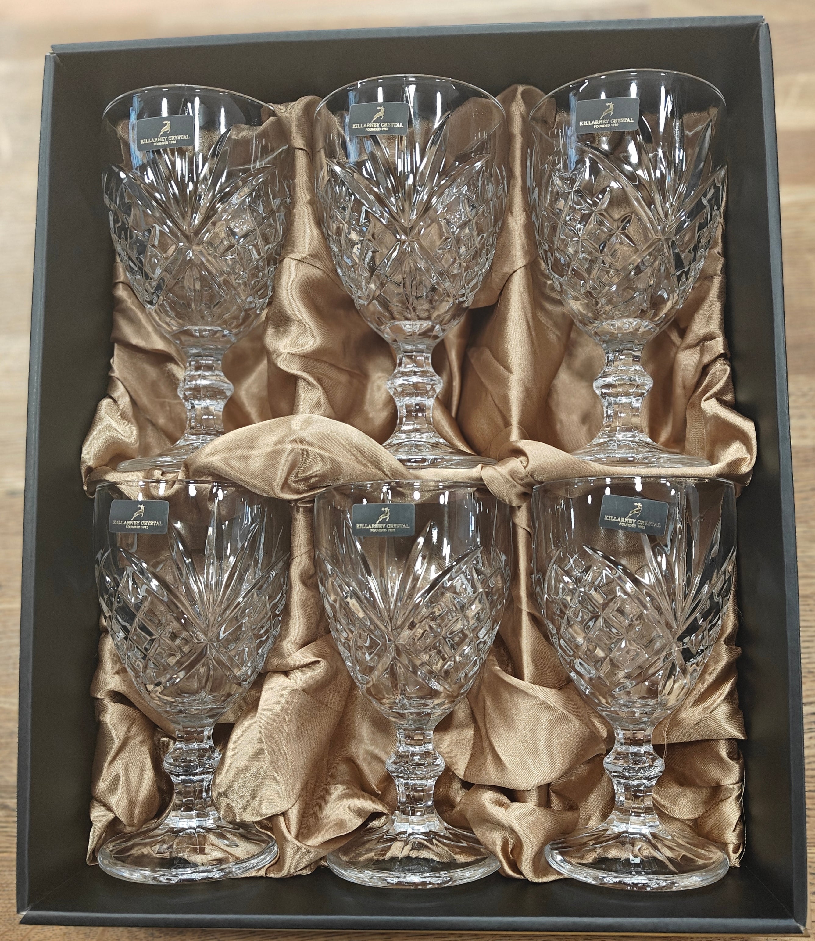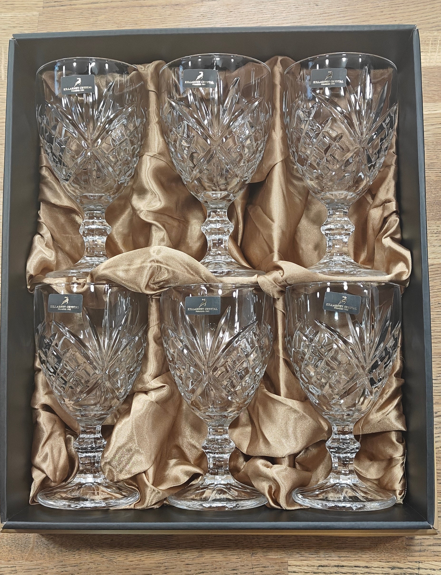 Trinity Stemmed Wine Goblet Set of 6 by Killarney Crystal with Branded Gift Box.