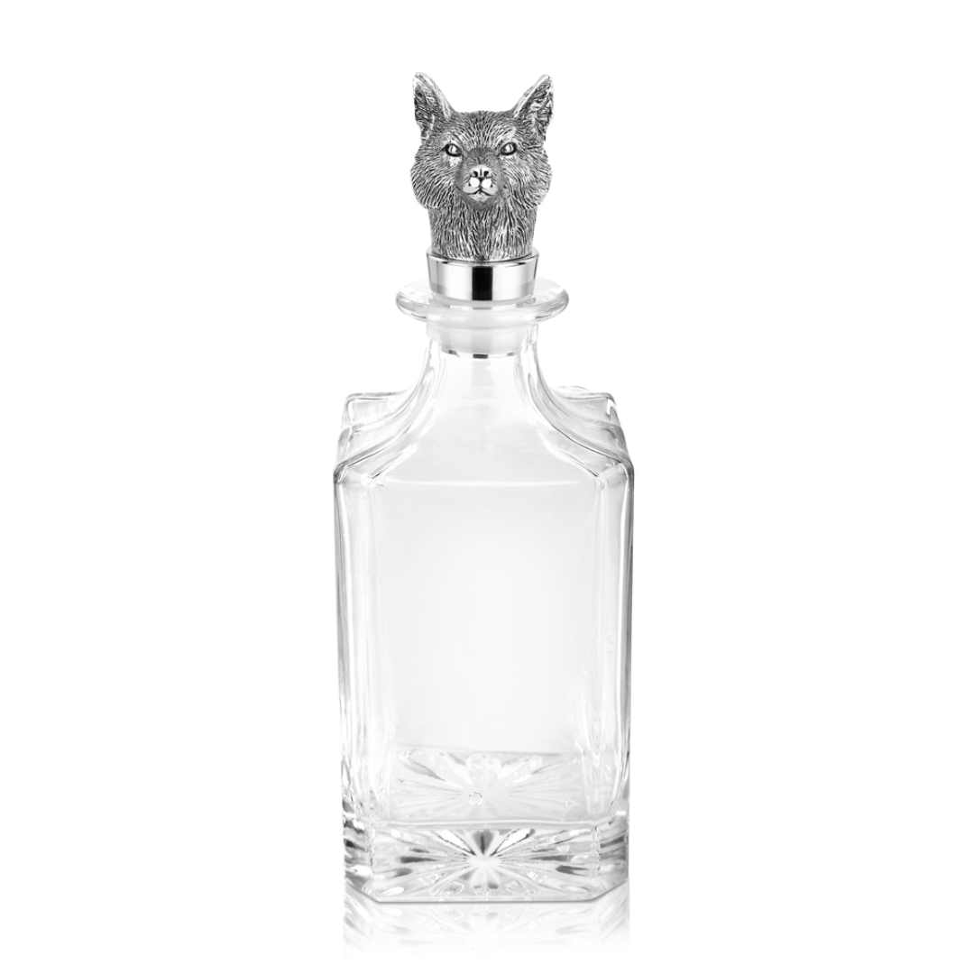 Product Features Silver Plated with a Protective Anti Tarnish Layer Glass Decanter Fox Head Design Detail Presented in our Iconic Newbridge Silverware Gift Box Dimensions 260mm x 90mm x 92mm, Capacity 750ml Model Name - Fox Head Decanter