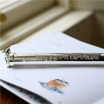 Product Details Silver Plated with a Protective Anti Tarnish Layer Teddy Bear Design Holds A4 Certificate - include A4 Scroll Suitable for Personalisation Presented in our Iconic Newbridge Silverware Gift Box Dimensions 25mm x 245mm * This is not a toy Model Name - Scroll Holder with Bear