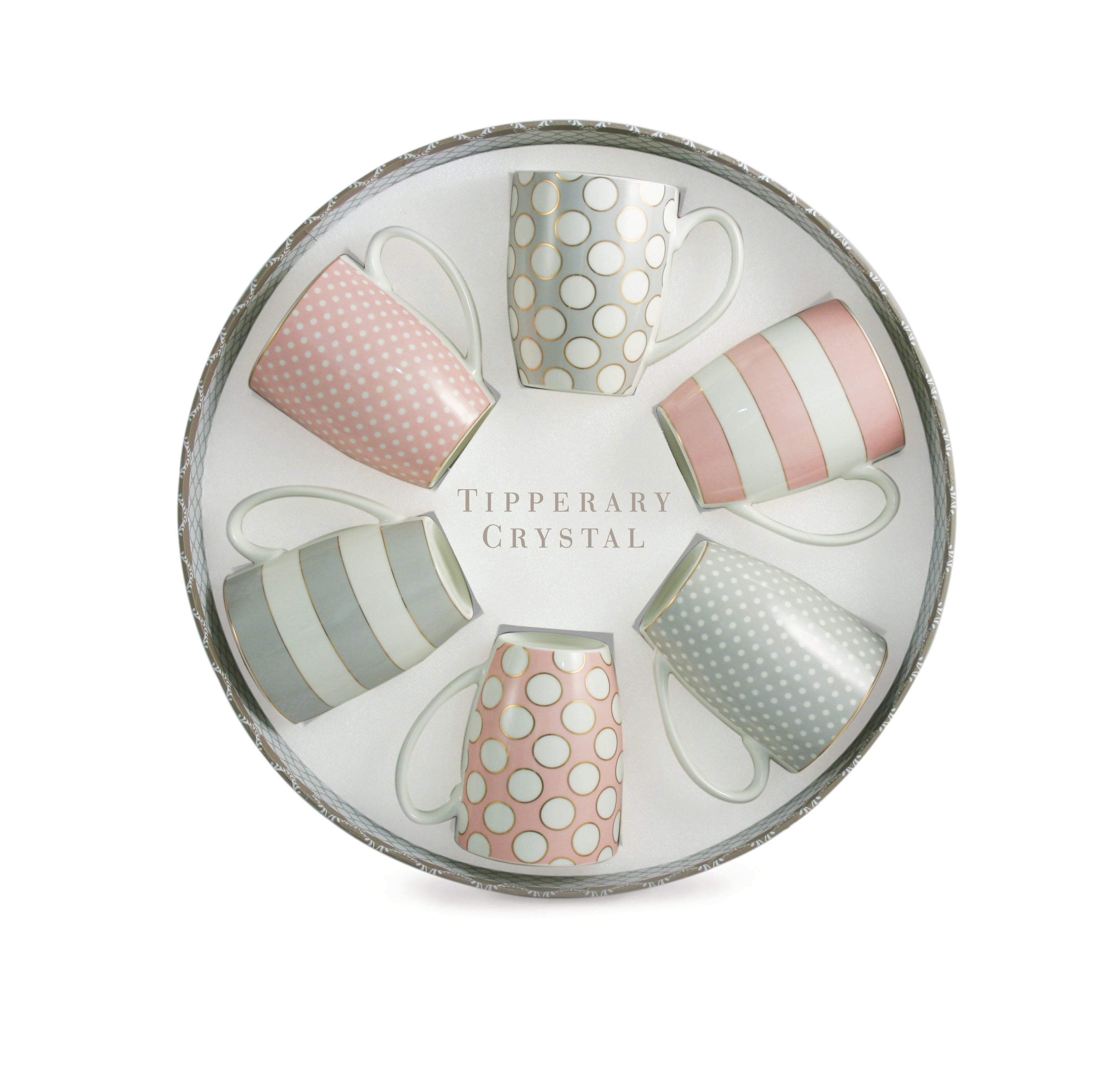 Tipperary Crystal Set 6 Bone China Mugs - Spots & Stripes Party Pack