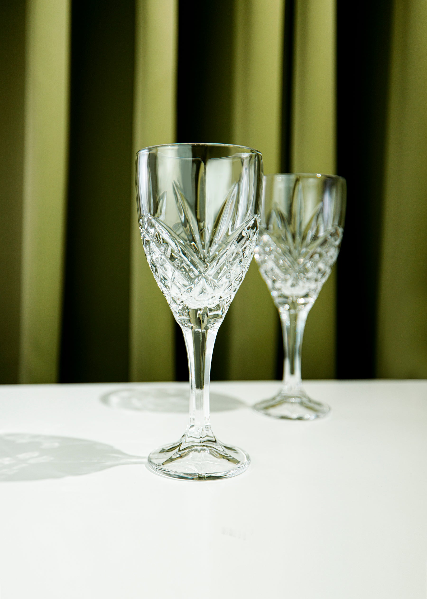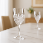 Signature Trinity Design: Featuring ornate cut crystal detailing in the iconic Trinity pattern, which blends three elegant motifs—this design adds depth, sparkle, and character to each goblet.