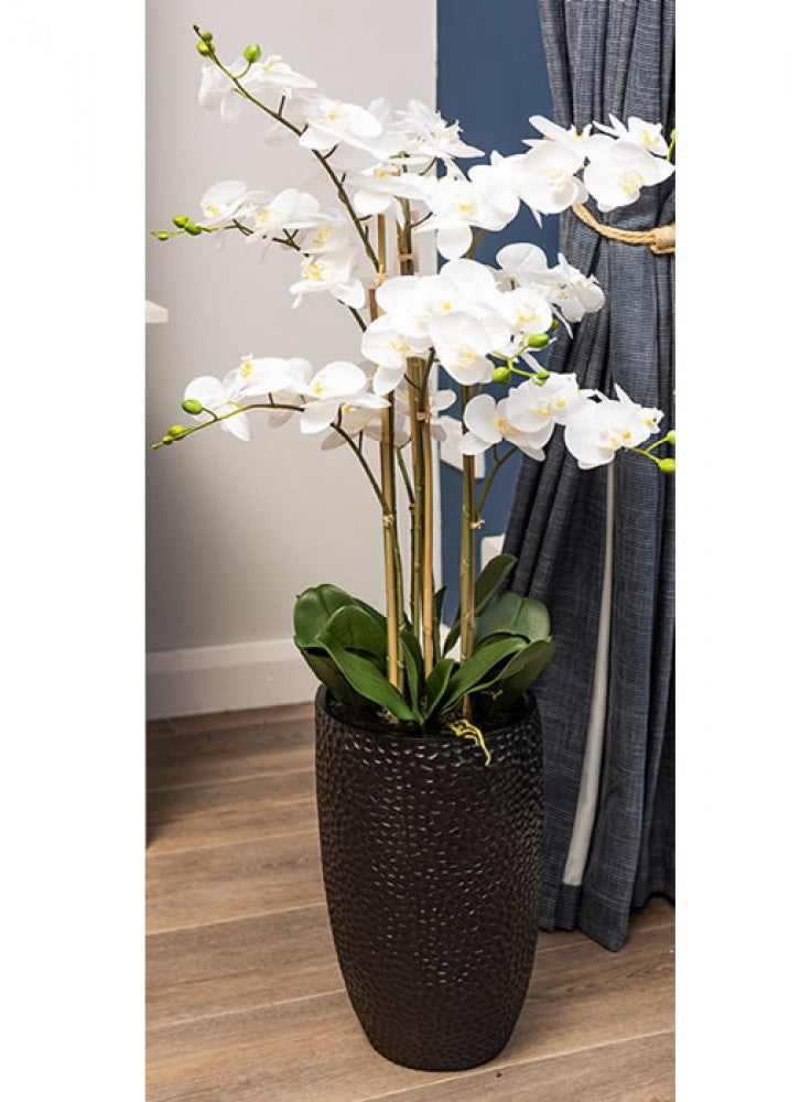 The Grange Collection Artificial Real Feel 9 Stem Orchid With Black Pot