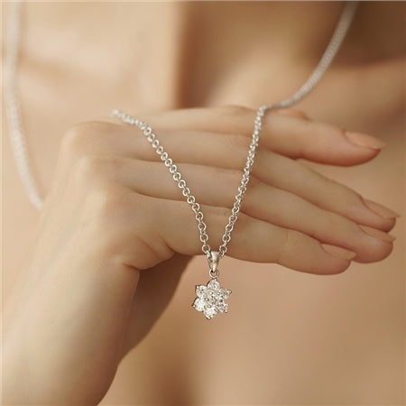 Make every look elegant with this petite silver plated floral pendant from Newbridge Silverware. Its simplicity and timeless design emulates a classic feel with the added sparkle of the cubic zirconia stone settings making it the perfect piece for enhancing your everyday outfits. This pretty pendant is a wonderful gift for someone special in your life.