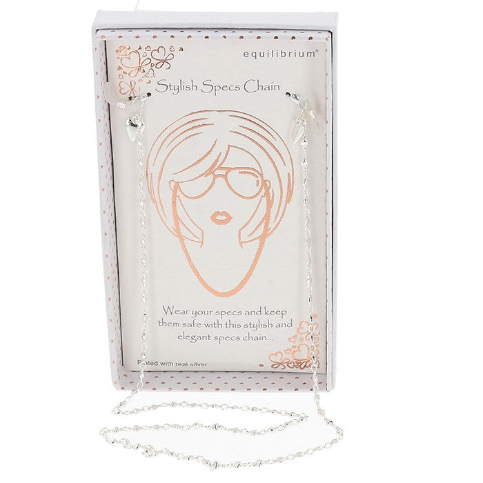 Modern Silver Plated Specs Chain Hearts Reading Glasses Chain and Spectacle Holder.