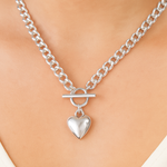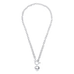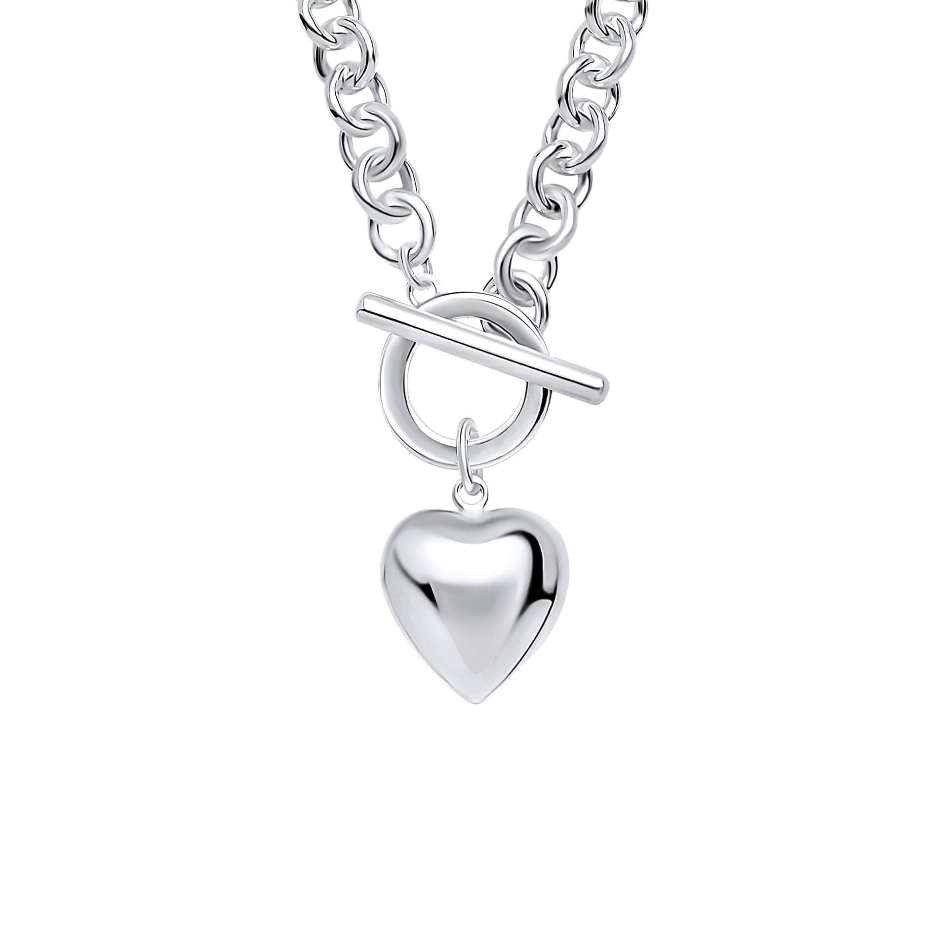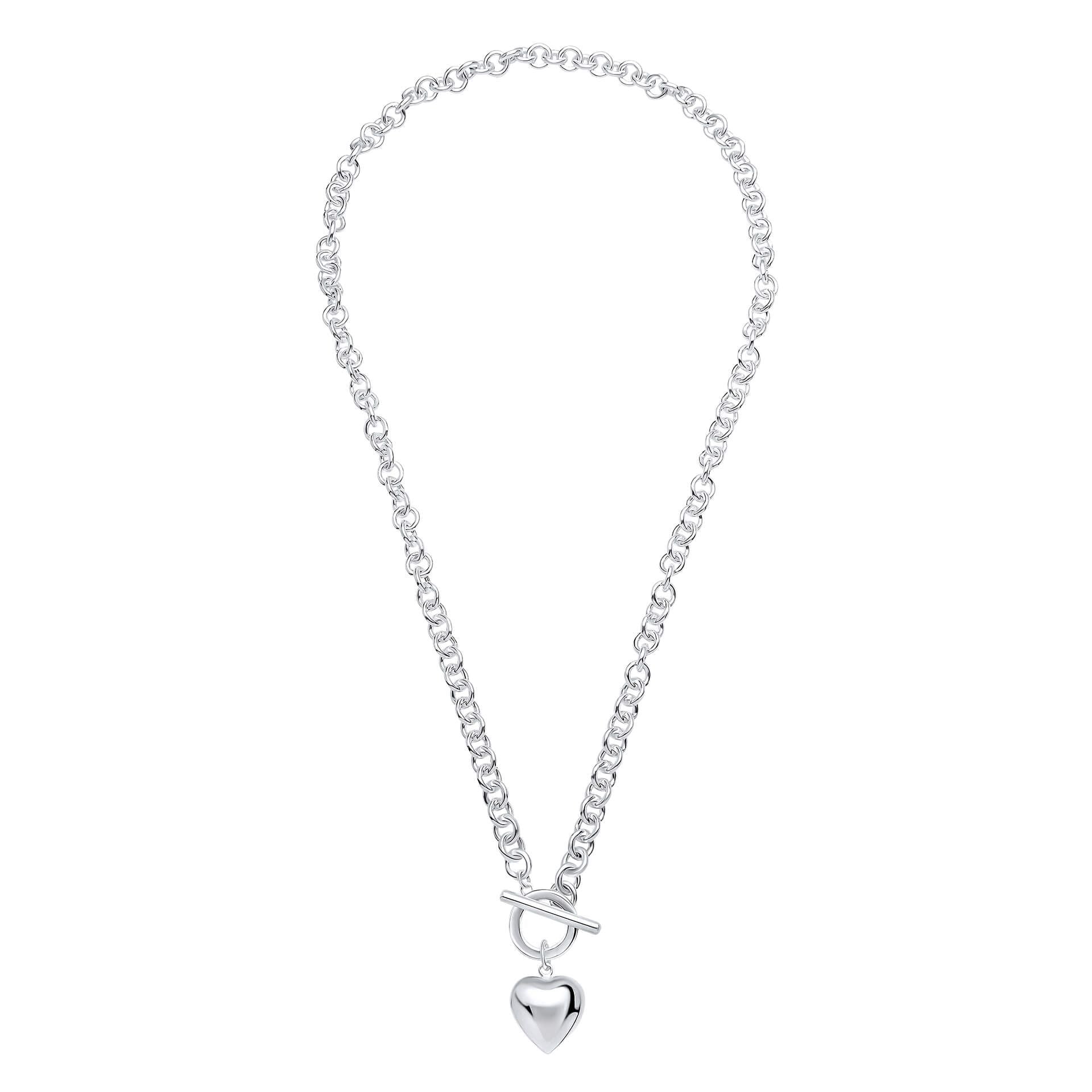 Sterling Silver Puff Heart T-Bar Chain Necklace