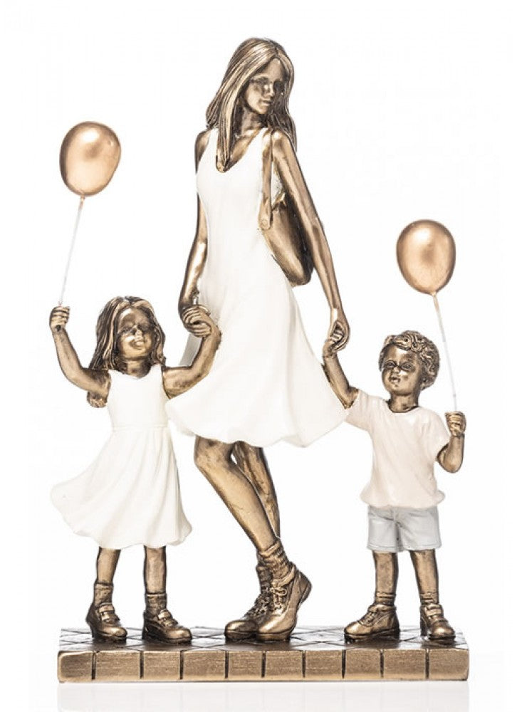 Exquisite bronzed figurine of a fashionable Mother with Children and Balloons - white hand painted detail. Browse our beautiful range of hand painted figures, each modelled with intricate details that truly bring these pieces to life, every design within this collection captures the true character of each piece.