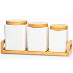 Newgrange Living White Ceramic 3-Piece Canister Set with Tray