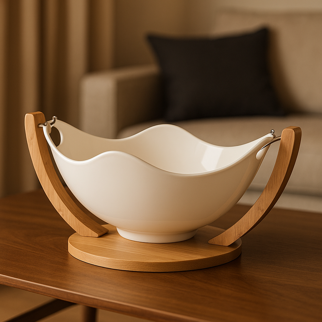 Integrated Wooden Stand: The natural wood base adds warmth and thoughtful design, while keeping the bowl stable and easily accessible.