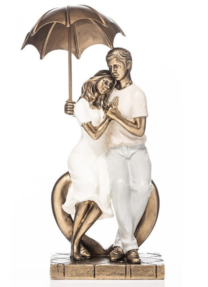 Exquisite bronzed figurine of a fashionable Rainy Day Couple Holding Brolly - white hand painted detail. Browse our beautiful range of hand painted figures, each modelled with intricate details that truly bring these pieces to life, every design within this collection captures the true character of each piece.
