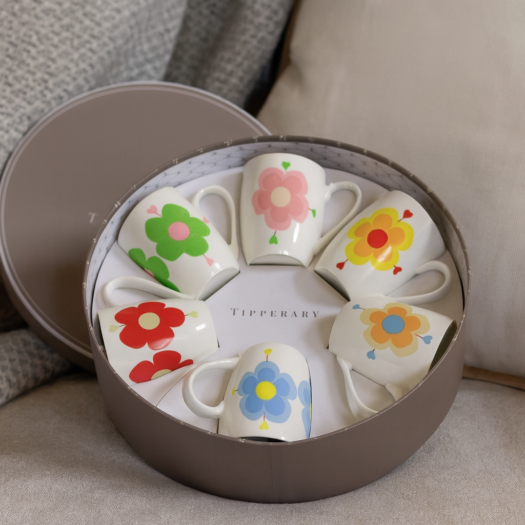 Tipperary Crystal Set 6 Bone China Mugs - Heart Flowers Party Pack