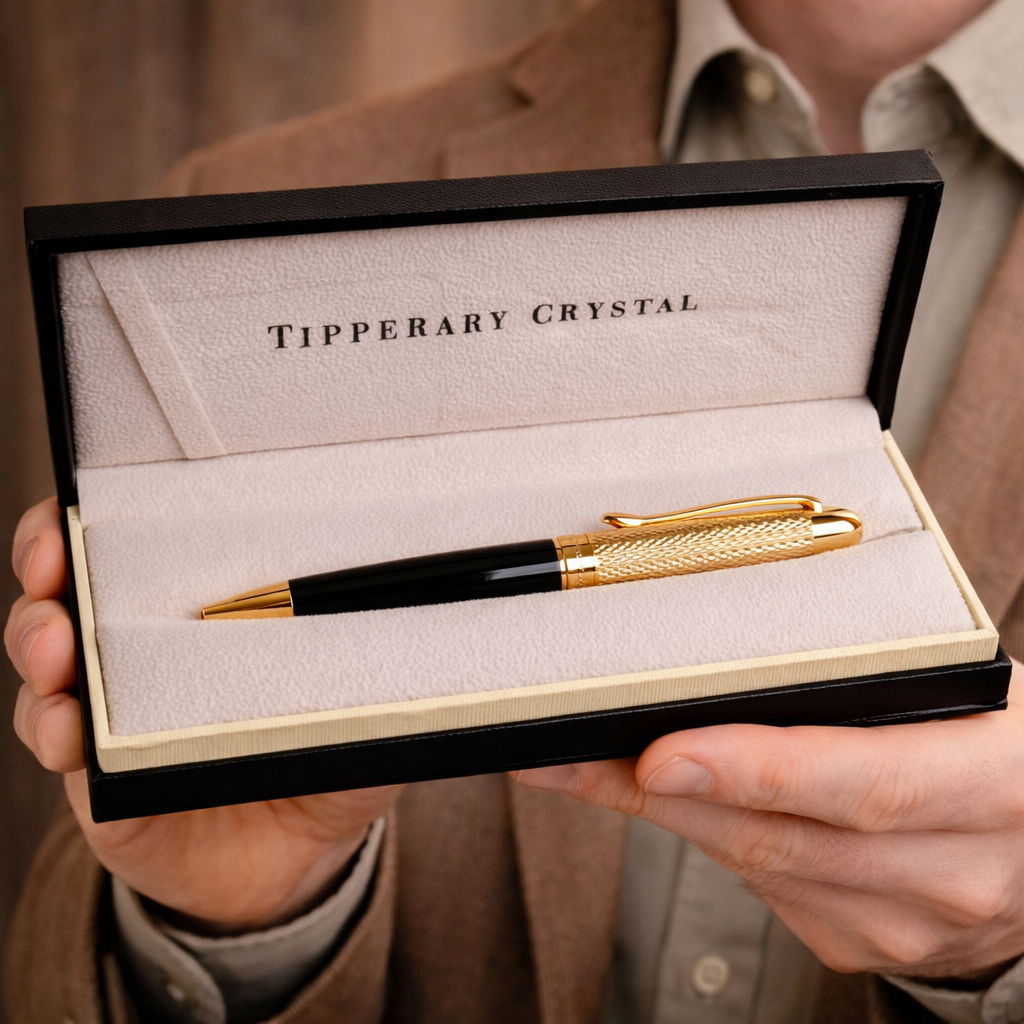 Elegant and richly symbolic, the Tipperary Crystal James Joyce Gold Pen is a refined writing instrument inspired by one of Ireland’s most celebrated literary figures. Finished in a luxurious gold tone, this pen blends timeless style with cultural heritage, making it a meaningful accessory for everyday writing or special occasions.