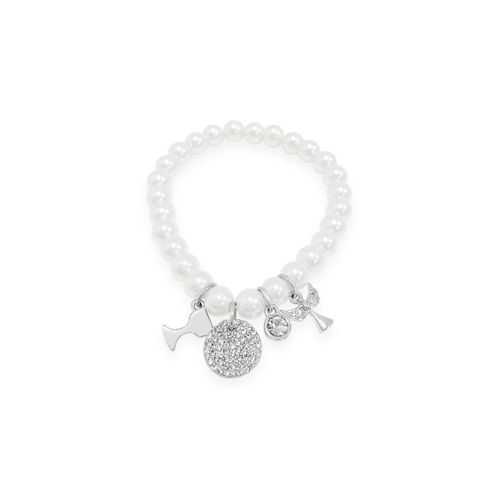 Absolute Jewellery Silver pearl 4 charm bracelet with chalice
