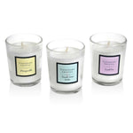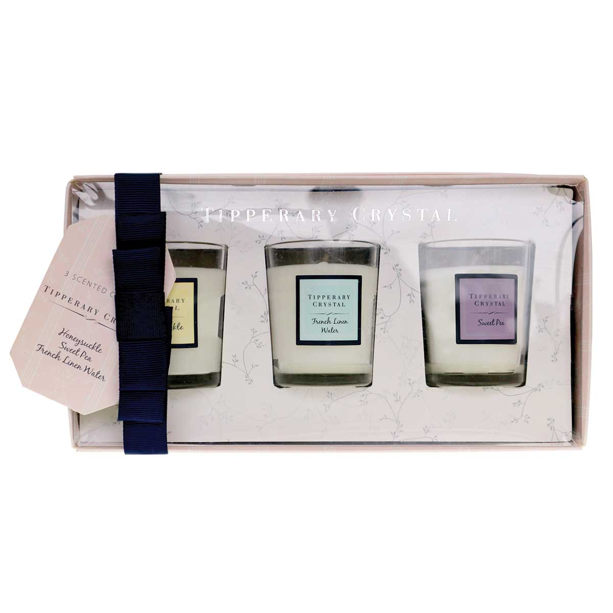 Tipperary Crystal Set of 3 Assorted Mini Candles - Sweet Pea, Honeysuckle, French Linen