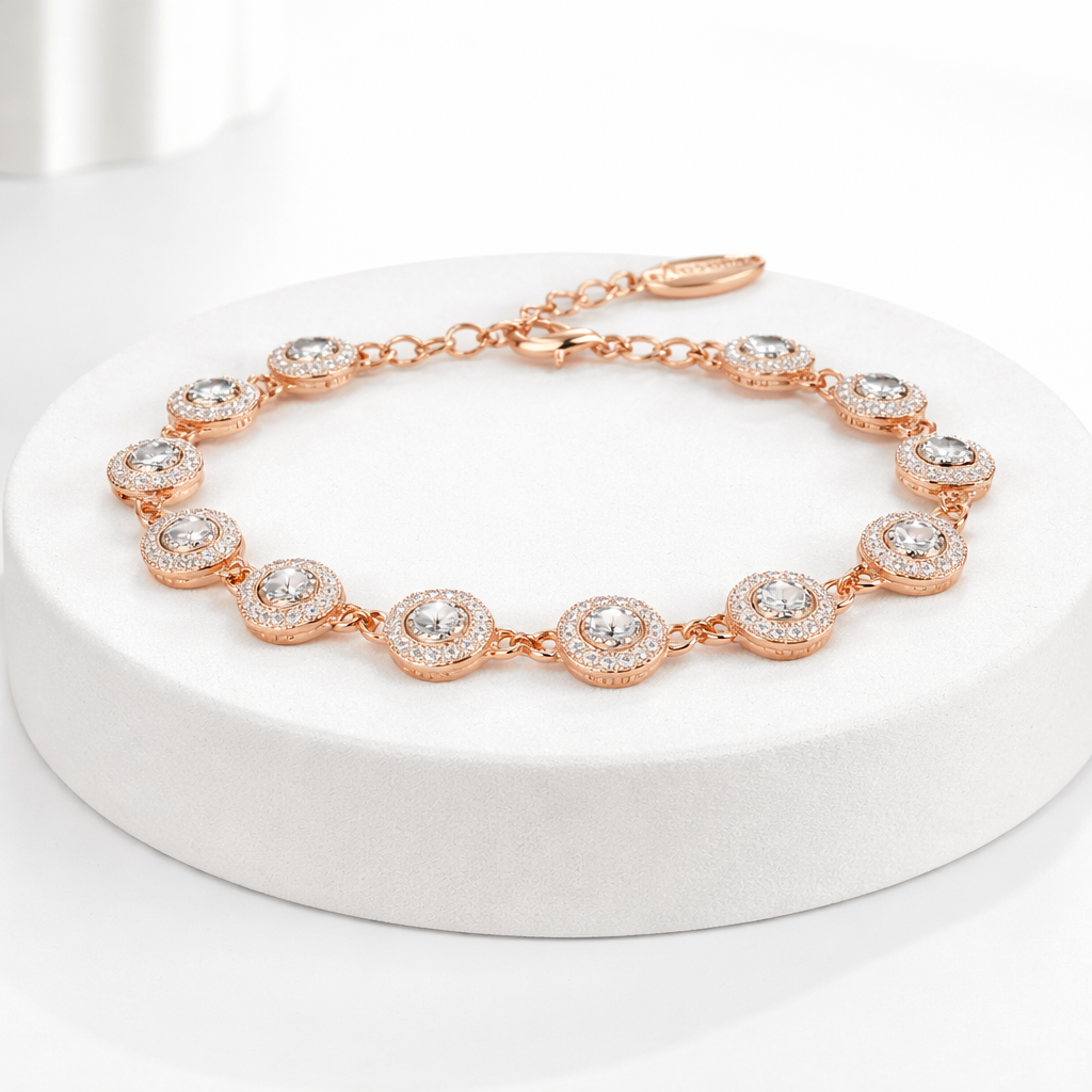 Elegant and refined, the Absolute Cubic Zirconia Bracelet is a timeless piece designed to add effortless luxury to your everyday style. Featuring a series of beautifully crafted circular links, each set with precision-cut cubic zirconia stones, this bracelet delivers a radiant, diamond-like sparkle that catches the light with every movement.