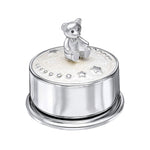 Crafted with exquisite detail and adorned with contrasting silver plating and shimmering white epoxy sections, this music box is sure to capture the hearts of children and adults alike. As you gently twist the charming teddy bear perched atop the box, watch as the mechanism comes to life, filling the air with the timeless melody of "Twinkle, Twinkle, Little Star". Designed to ignite the imagination and inspire creativity, this music box is a perfect gift for any young adventurer. Whether it's placed on a bedside table or displayed proudly on a shelf, this whimsical treasure will bring joy and magic to any space.