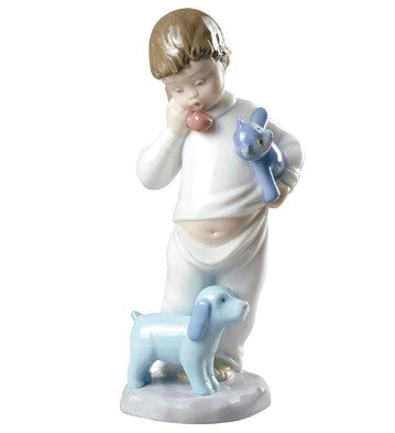 This porcelain Nao figurine features a young boy playing with his toy phone.