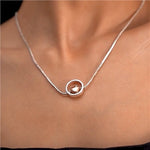 - Silver and Rose Gold Plated Heart Pendant Clear Crystal Stone Setting Protective Anti Tarnish Layer Perfect Gift for Any Occasion Presented in Our Iconic Newbridge Silverware Gift Box Dimensions Heart 10mm diameter, outer circle 18mm diameter Model Name - Silver and Rose Gold Plated Crystal Heart Pendant