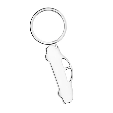 Silver plated keyring with a protective anti tarnish layer, car design, suitable for engraving, presented in a Newbridge Silverware gift box. Product dimensions 55mm x 19mm x 3mm.