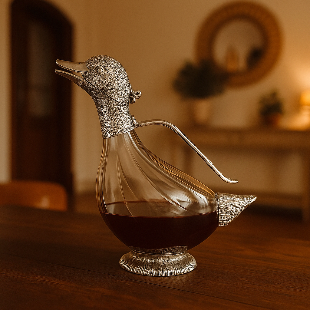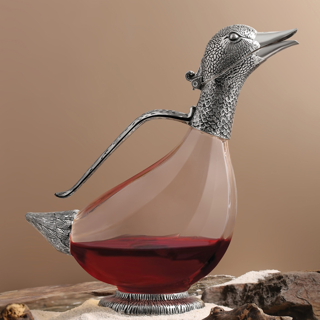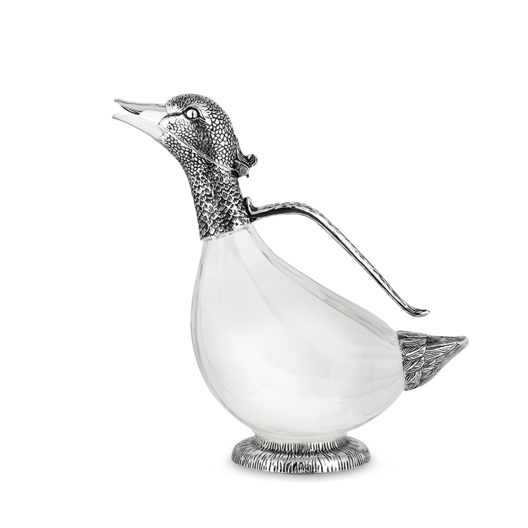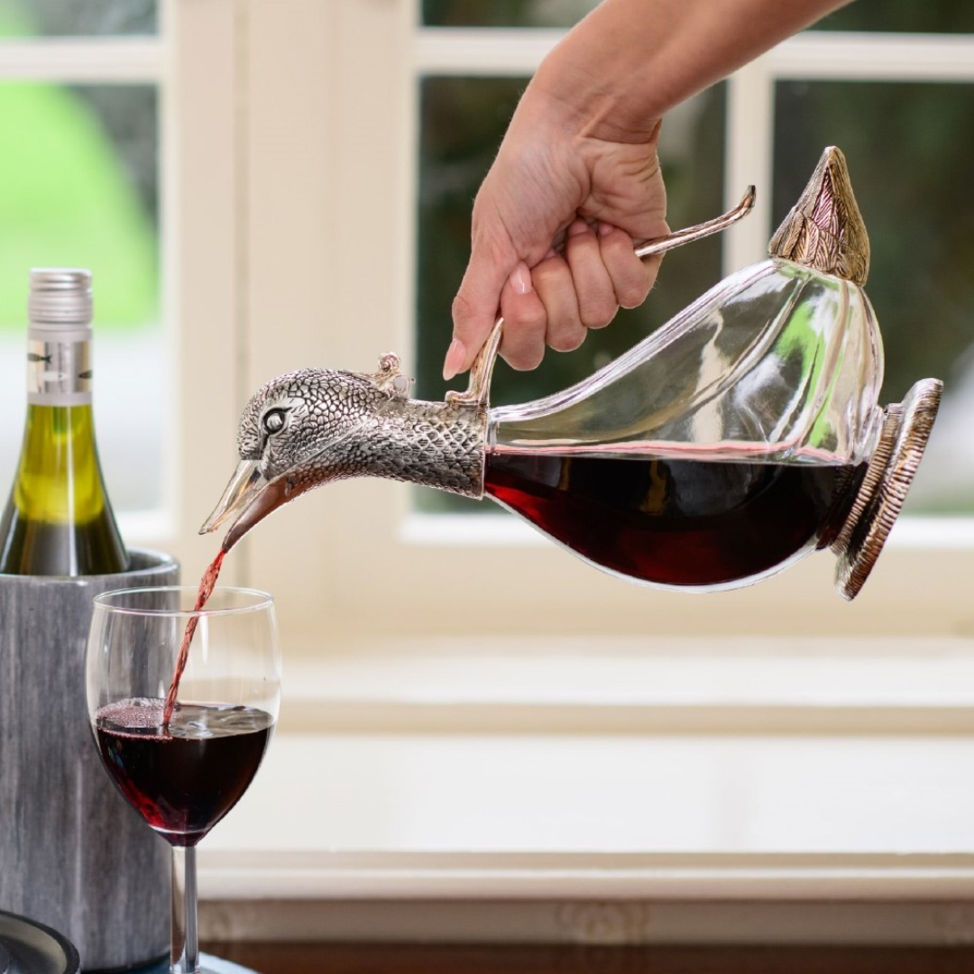 Elevate your home bar or dining experience with this whimsically elegant duck-shaped decanter from Newbridge Silverware.