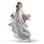 Celebrate the beauty of the season with the exquisite Lladró Spring Splendor figurine. This elegant porcelain piece captures a graceful young woman in motion, her flowing gown delicately adorned with soft floral detailing that evokes the freshness of spring.