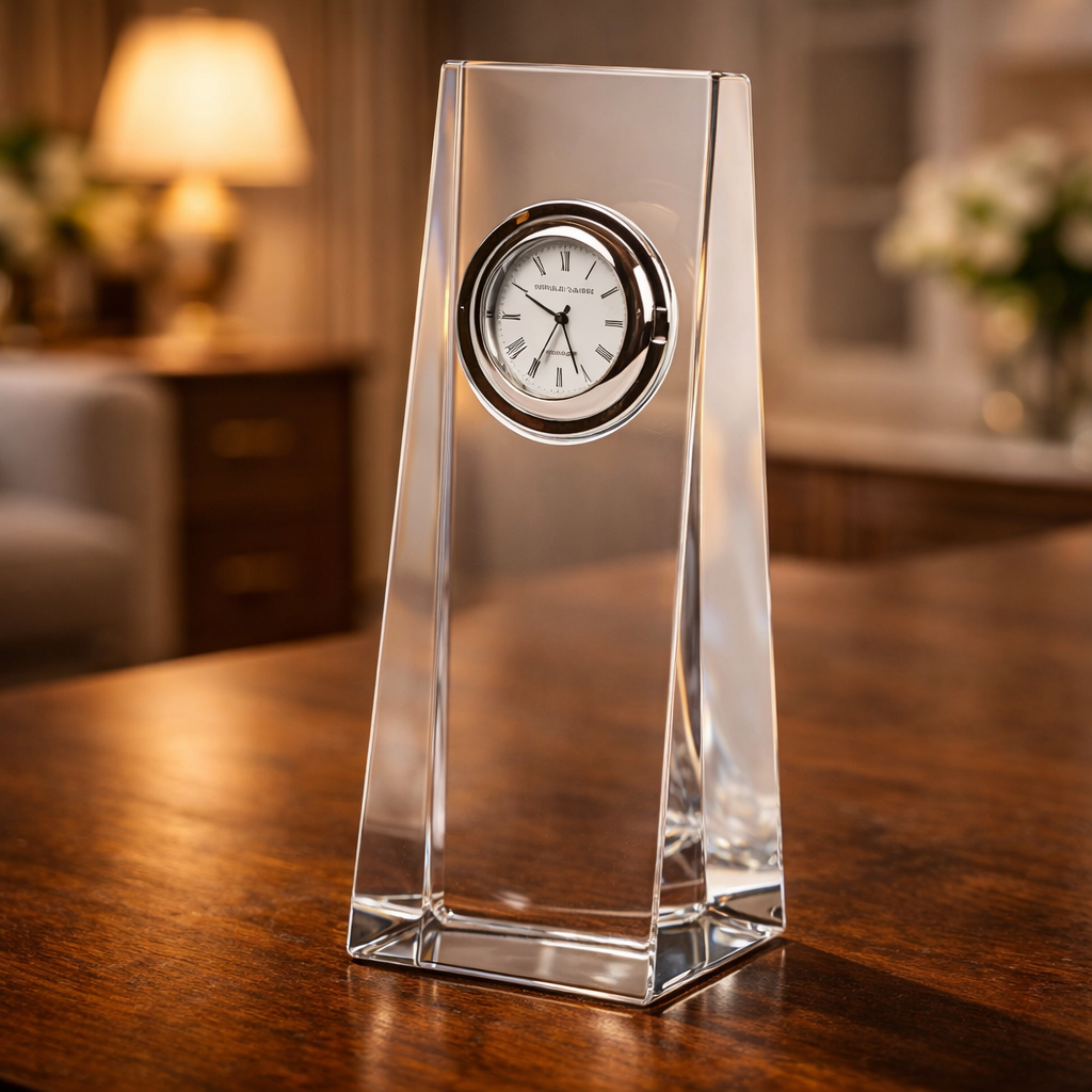 Elegant and contemporary, the Tempo Clock is a refined timepiece designed to bring style and sophistication to any interior. Crafted with clean lines and a sleek crystal finish, this modern clock reflects light beautifully while offering a timeless decorative appeal.