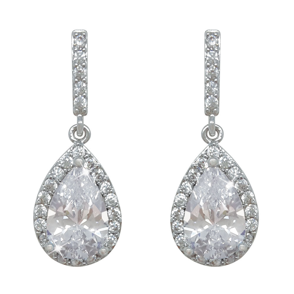 Tipperary Crystal Silver Pear Shape Earrings - White